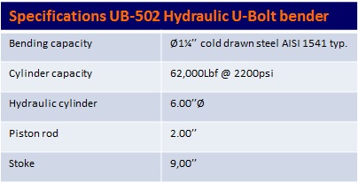 The UB502 is our most powerful u bolt bender with a capacity to bend 1¼ cold roll rods. The UB502 is equally capable of bending the smaller diameter  threaded rods same as the UB302. As with the UB302 the model UB502 is also equipped with a safety cage.