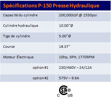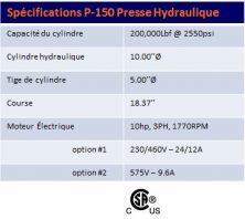 Simple, robuste et pratique ne sont que quelques qualités de notre modèle de presse P150 au châssis en C, d’une capacité de 100 tonnes. Sa configuration en C vous permet de travailler sur 3 côtés de la presse. La P150 dispose d‘assez de puissance pour alimenter un autre équipement VicRoc.