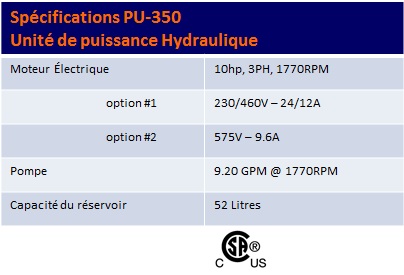 PU-350 Unité de puissance Notre unité de puissance PU-350 est compacte et performante. Elle est requise pour alimenter la table d’assemblage T-248, les cintreuses UB-302 et UB-502, ainsi que la cisaille SH-700 PU-350 Spécifications